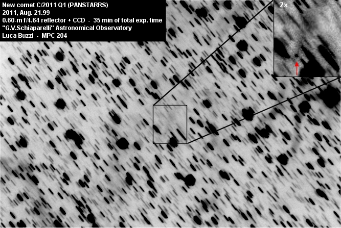 C/2011 Q1 (PANSTARRS) was discovered on 2011, Aug. 20.44 by PANSTARRS team with a 1.8-m f/4 reflector + CCD from Haleakala, Hawaii, USA.