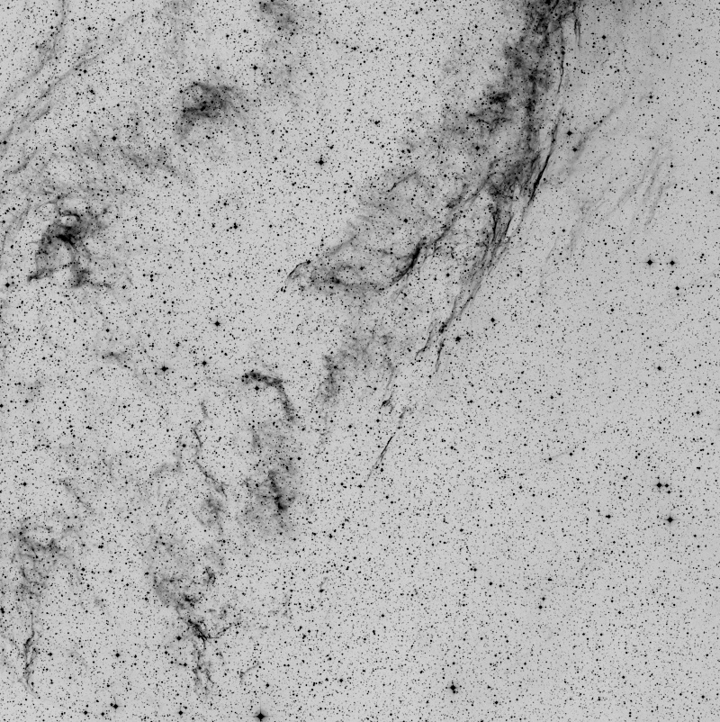 The field of view was crowded with stars and there was a vast nebulosity in the area (Veil Nebula in Cygnus) so I took over an hour of total exposure time, to be sure to have several images free of stars. The image below (old DSS field) gives you an idea of the field in which the comet was: