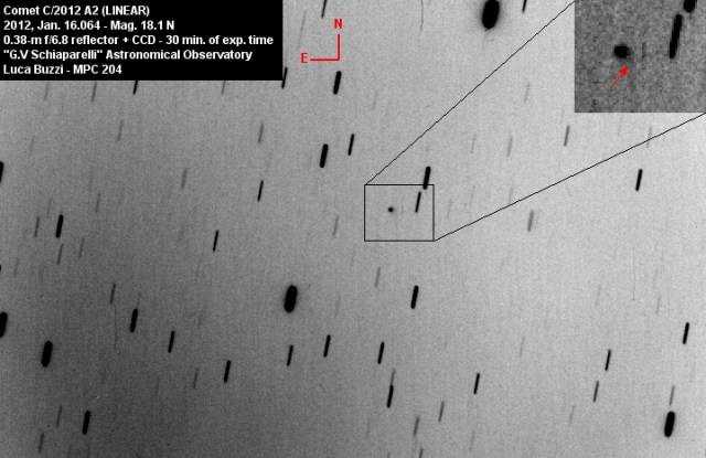 C/2012 A2 (LINEAR) was discovered by the LINEAR survey on 2012, Jan. 15.41 with a 1.0-m f/2.15 reflector + CCD located near Socorro, New Mexico.