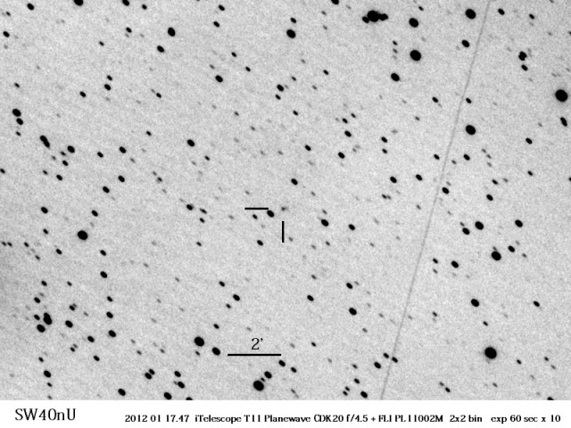 It was posted on the NEO Confirmation Page under the temporary designation SW40uN, and several other observers noted its cometary appearance, including me at 204-Schiaparelli on Oct. 17.0.