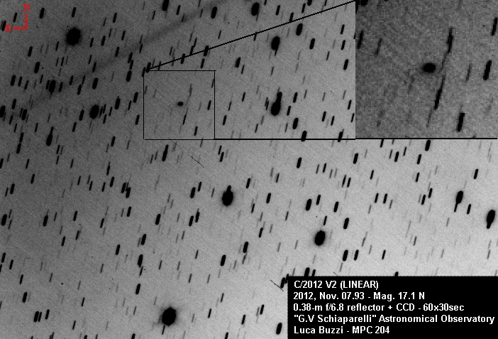 C/2012 V2 (LINEAR) was discovered by the LINEAR survey using a 1.0-m f/2.15 reflector from Socorro, NM.
