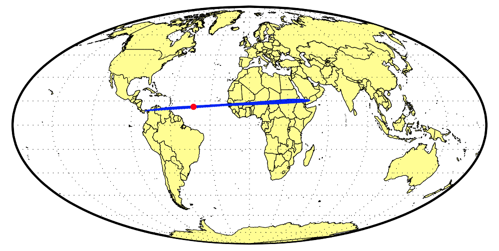 Peter Brown (University of Western Ontario) and Petrus Jenniskens (SETI Institute) searched the data from low frequency infrasound observation sites of the Comprehensive Nuclear-Test-Ban Treaty Organization. They found weak signals from stations in Bolivia, Brazil and Bermuda that indicated that the likely impact location was indeed positioned within the predicted impact area. The location of impact, marked with a red dot in the image below, is still somewhat uncertain due to observational factors, including atmospheric effects upon the propagation of infrasound signals (low frequency sound waves due to atmospheric explosions).